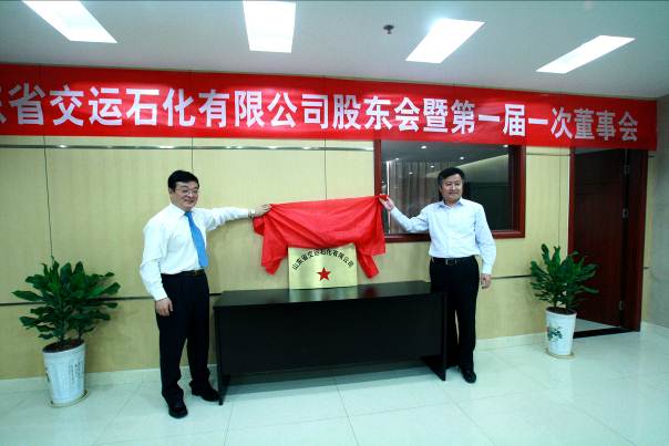 517日,山東省交運石化有限公司揭牌成立,同時召開了股東會暨第一屆一次董事會。集團公司總經理、黨委副書記王謙,中國石化山東石油分公司副總經理趙順本,作為雙方股東代表為公司成立揭牌。會議由集團公司副總經理田景東主持。