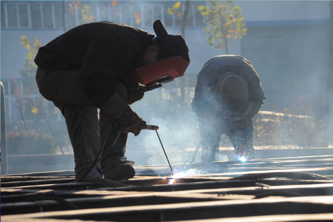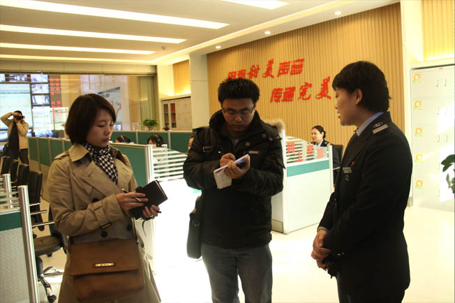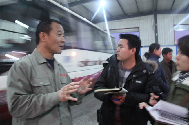 在濟(jì)宇汽車修理車間采訪小組成員在現(xiàn)場進(jìn)行采訪、拍攝