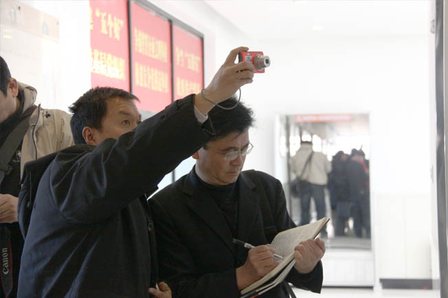 在濟(jì)南長途汽車總站,大家參觀了售票處、檢票處、報(bào)班處、兔兔快運(yùn)及集團(tuán)公司監(jiān)控管理中心,體會(huì)到了總站員工熱情高漲的工作狀態(tài)、整潔有序的辦公環(huán)境,嚴(yán)緊而又人性化的創(chuàng)新管理辦法,以及集團(tuán)公司規(guī)范高效的安全管理信息系統(tǒng);濟(jì)宇高速則充分展示了他們獨(dú)具特色的企業(yè)文化、鮮活的培訓(xùn)教育,高端創(chuàng)新業(yè)務(wù)開發(fā)以及安全管理十二法等工作亮點(diǎn)。其中駕駛員賈湘鳴安全行駛367萬公里沒有發(fā)生一次安全事故的高超技術(shù),讓隨行記者嘖嘖稱贊;在黃河航運(yùn)局,采訪小組參觀了洛口浮橋、齊河造船廠、感受了黃河航運(yùn)局承建的新式游船,大家感嘆黃航人將浮橋建到中俄、中朝邊境、開發(fā)水上旅游項(xiàng)目等創(chuàng)舉,讓造船業(yè)這門“老手藝”煥發(fā)出新活力,同時(shí)更感受到他們不屈不撓、勇于開拓的拼搏精神;在濟(jì)南西客站綜合客運(yùn)樞紐施工工地,采訪組了解到,為確保工程質(zhì)量,建造細(xì)節(jié)精確到公廁所里一堵墻的厚薄,人性化設(shè)計(jì),點(diǎn)滴細(xì)微到導(dǎo)乘牌、空調(diào)的設(shè)計(jì)位置,那緊鄰嘈雜工地的簡易辦公板房,那為保證工期經(jīng)常加班至深夜的員工以及他們?nèi)鐢?shù)家珍般介紹工程進(jìn)度情況的興奮神情,都深深打動(dòng)了每一位成員,聚影小組的鏡頭紛紛對準(zhǔn)管理人員和工人們忙碌的身影;在交運(yùn)物流,大家對LNG危化品運(yùn)輸工作興趣十足,圍在LNG危化品運(yùn)輸車旁,不停地提問、拍照,了解其發(fā)展方向及安全性能,感嘆“物流鐵軍”遠(yuǎn)赴新疆,安全運(yùn)送的艱辛,贊嘆其超前的市場定位及大有可為的市場前景,期待再添新運(yùn)力,拓展新業(yè)務(wù)的好消息;在兔兔快運(yùn),倉庫中有序擺放著各種貨物,公司樓下整齊停放著通勤班車,在職工食堂,員工笑意盈盈吃著“免費(fèi)午餐”,一幕幕場景,讓大家不由深深感受到多年來積極穩(wěn)定的發(fā)展,讓“兔兔”職工們擁有了極高的“幸福指數(shù)”和“理想指數(shù)”,而這一切又折射到工作中,形成了高效的執(zhí)行力;在汽車修理廠保險(xiǎn)理賠大廳,記者們詳細(xì)詢問了在便民、惠民等方面為廣大市民提供的各項(xiàng)措施以及理賠知識(shí),觀看了修理廠一輛被損私家車從維修到噴漆后煥然一新的變化過程,稱贊其優(yōu)良的修理技術(shù)和嚴(yán)格規(guī)范的動(dòng)作流程;在保修廠安全檢測線,成員們對檢測程序中涉及的各種專業(yè)術(shù)語和檢測注意事項(xiàng)刨根問底,為他們頂住壓力,不為任何不合格車輛“開后門”的堅(jiān)定立場豎起大拇指!