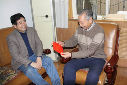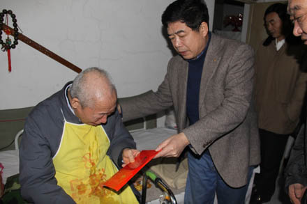您現在的位置是:首頁 > 集團要聞 省國資委領導走訪慰問集團老黨員 次 集團要聞 發布時間:2012-01-17 18:55:48 省國資委領導走訪慰問集團老黨員 1月17日上午,省國資委巡視員裴建華一行領導在集團公司董事、工會主席張志堅的陪同下,冒雨來到集團,先后前往離退休老黨員、老干部王德明、鄒全會的家中,親切看望了他們的身體和生活狀況,代表省國資委向他們贈送了慰問金,并祝福他們安度晚年、新春愉快。省國資委機關黨委專職副書記王在新、離休干部處調研員王萬珂參加了走訪慰問。 (黨委組宣部、老干部)