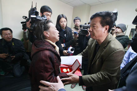 期間,王副主席向宋洋母親傳達(dá)了省總工會授予宋洋同志山東省富民興魯勞動獎?wù)挛募瘢窝竽赣H代替兒子接收了頒發(fā)的富民興魯勞動獎?wù)潞妥C書。王副主席表示:宋洋堅持職業(yè)操守,舍己為人的事跡值得大家學(xué)習(xí)和頌揚(yáng),大家都要從我做起,從本職工作做起,從身邊的事情做起,把人生價值和目標(biāo)融入到實際工作和日常生活之中,化作具體的道德實踐行動。宋洋母親不停地摩挲著獎?wù)潞妥C書,激動地說:“感謝組織,我替兒子高興”。