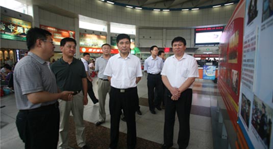 7月19日上午,山東省國資委黨委副書記、紀委書記岳濱一行蒞臨集團公司調(diào)研指導(dǎo)工作。集團公司董事長吳宗昌、總經(jīng)理王謙及部分領(lǐng)導(dǎo)班子成員陪同調(diào)研。期間,吳宗昌董事長匯報了集團公司基本概況和黨建、黨風(fēng)廉政建設(shè)工作開展情況,岳書記在聽取匯報后,與在座集團領(lǐng)導(dǎo)進行了深入座談,并做重要指示。最后,岳書記一行來到濟南長途汽車總站進行實地參觀指導(dǎo),與正在義務(wù)為旅客送水的十八大代表李文親切交談,并對總站女士售票窗口、人臉識別、3G視頻監(jiān)控等安全舉措給予了高度評價和肯定。