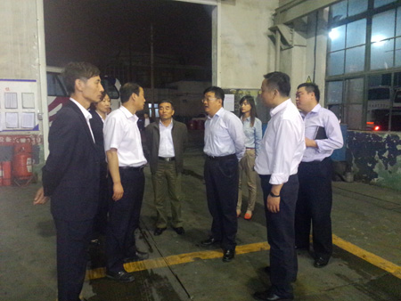 約談結束已是晚上8:30分,王總繼續深入生產一線,現場參與了安全生產例會,對借助幻燈片圖文并茂、生動形象地講解車輛違規行為及燃氣車輛的自我檢修方法的形式給予肯定。在安全會后的即興講話中,王總對駕駛員的辛勤付出表示衷心感謝,承諾職工待遇必然會隨著公司效益的提高而提高,企業的制度建設也將更加的人性化,同時強調,安全工作是集團生產運營過程中非常重要的環節,要繼續加強案例分析,將別人的案例經驗作為我們改進的途徑,全面提升安全保障水平。隨后,王總參觀了修理車間和安全例檢中心,觀看了員工檢車的全過程,并叮囑要做好檢車員的安全保障工作。晚上22:00左右,調研活動圓滿結束。