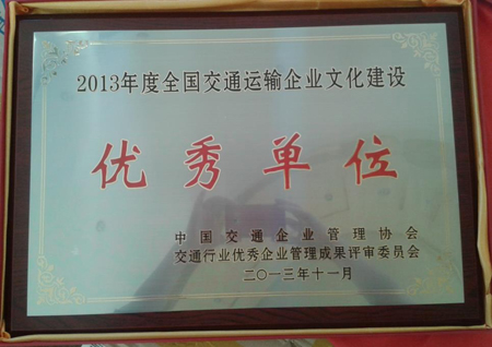 11月25日,在中國交通企業管理協會、交通行業優秀企業管理成果評審委員會在廣州組織召開的“第八屆全國交通運輸企業文化建設高峰會”上,集團公司榮膺“2013年度全國交通運輸企業文化建設優秀單位”榮譽稱號。
