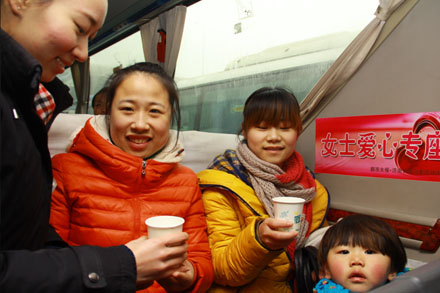 節(jié)日當(dāng)天,在南區(qū)兔兔快運(yùn)發(fā)貨滿99元,贈(zèng)送康乃馨;濟(jì)南長(zhǎng)途汽車東站則推出關(guān)注官方微信“jnctqcdz”,憑截圖享票價(jià)九五折優(yōu)惠及“出行信息早知道”等節(jié)日送溫馨活動(dòng)。此外,省交運(yùn)集團(tuán)隸屬的客運(yùn)站全部設(shè)立了“女士購票窗口”,免去女性購票很多尷尬和不便;開辟了“孕嬰候車室”,乘車的孕婦和嬰幼兒均可以免費(fèi)享受到安靜的候車環(huán)境和醫(yī)務(wù)人員的指導(dǎo),并有專門的站務(wù)人員為她們提供購票、乘車等全方位的優(yōu)先服務(wù)。