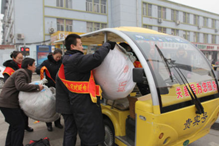 一是送溫暖暖人心。南區團員們利用業余時間熬制了紅糖姜水,在早上9:00和下午14:00,分別為候車旅客免費送飲,為冬日候車的旅客送去了暖暖的情誼和貼心的服務。二是送行李免等待。在濟洛路總站南區站牌,設立了2個流動服務崗,安排專車為乘公交轉乘到車站的旅客提供免費行李推送服務,并設立購票顧問和流動售票員,不但減少了旅客的排隊購票的麻煩,還縮短了購票乘車的時間。三是送提醒保安全。團員們在公交站牌設立了安全崗,倡導旅客安全乘車,拒乘黑車,并向旅客派發安全乘車提醒卡,告知旅客安全乘車常識和如何辨別黑車。