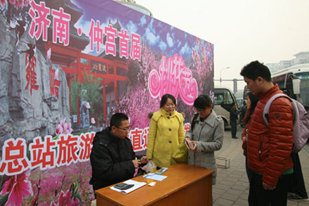 “站運(yùn)游”開辟新市場(chǎng)。隨著“仲宮首屆桃花節(jié)”的開幕,總站客運(yùn)營(yíng)銷中心瞄準(zhǔn)火爆的賞花游市場(chǎng),在4月4日——4月12日全力打造總站至仲宮波羅峪景區(qū)旅游專線,為廣大旅客提供欣賞桃花的專線班車。不僅如此,總站積極與波羅峪景區(qū)聯(lián)系,由景區(qū)提供200張免費(fèi)門票,免費(fèi)贈(zèng)送給現(xiàn)場(chǎng)參與活動(dòng)的旅客。活動(dòng)一經(jīng)開展,就吸引了廣大旅客的熱情參與,僅清明三天假期,總站站前廣場(chǎng)就發(fā)送近郊游旅客近1000人,實(shí)現(xiàn)客票收入36000余元。