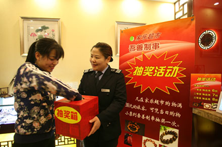 “吾善制串”開創(chuàng)新活動(dòng)。為不斷發(fā)揮場(chǎng)站的客流優(yōu)勢(shì),將旅客的乘車時(shí)間轉(zhuǎn)換為消費(fèi)優(yōu)勢(shì),總站“家樂超市”與“吾善制串”聯(lián)合推出抽獎(jiǎng)活動(dòng),凡在“家樂超市”購(gòu)物滿38元的旅客都可憑當(dāng)日購(gòu)物小票到“吾善制串”免費(fèi)抽獎(jiǎng)一次。活動(dòng)的推出,不僅受到廣大旅客的熱情歡迎,更打響了總站“吾善制串”的知名度,增加了總站第三產(chǎn)業(yè)的營(yíng)業(yè)收入。