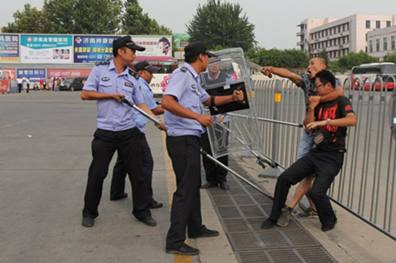 演練模擬從發(fā)現(xiàn)持械可疑人員進入車站開始,按照應急預案,各部門迅速進行實戰(zhàn)狀態(tài),各負其責,分頭疏散現(xiàn)場車輛和旅客,防止次生隱患的發(fā)生。治安人員利用反恐器械合力將歹徒制服,并通過一鍵報警系統(tǒng)報警,配合民警將歹徒扭送至車站派出所進行處理。