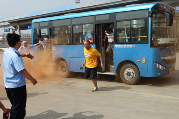 6月28日上午9時(shí),隨著平陰客運(yùn)中心院內(nèi)突然傳來一聲爆炸聲,模擬停車場班車發(fā)生火情,一陣黃色的煙霧從公交車底散出。工作人員第一時(shí)間用滅火器滅火并輸散旅客和車輛,同時(shí)迅速通知消防隊(duì)及救援人員火速到達(dá)現(xiàn)場處理后續(xù)事宜,力爭將損失降至最低。