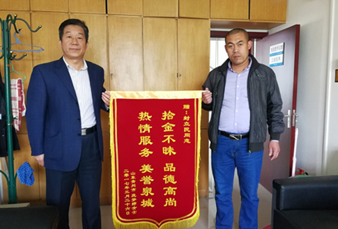 春和景明迎錦旗 拾金不昧暖人心