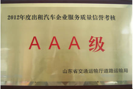 聯運出租公司被評為2012年度AAA級服務質量信譽企業